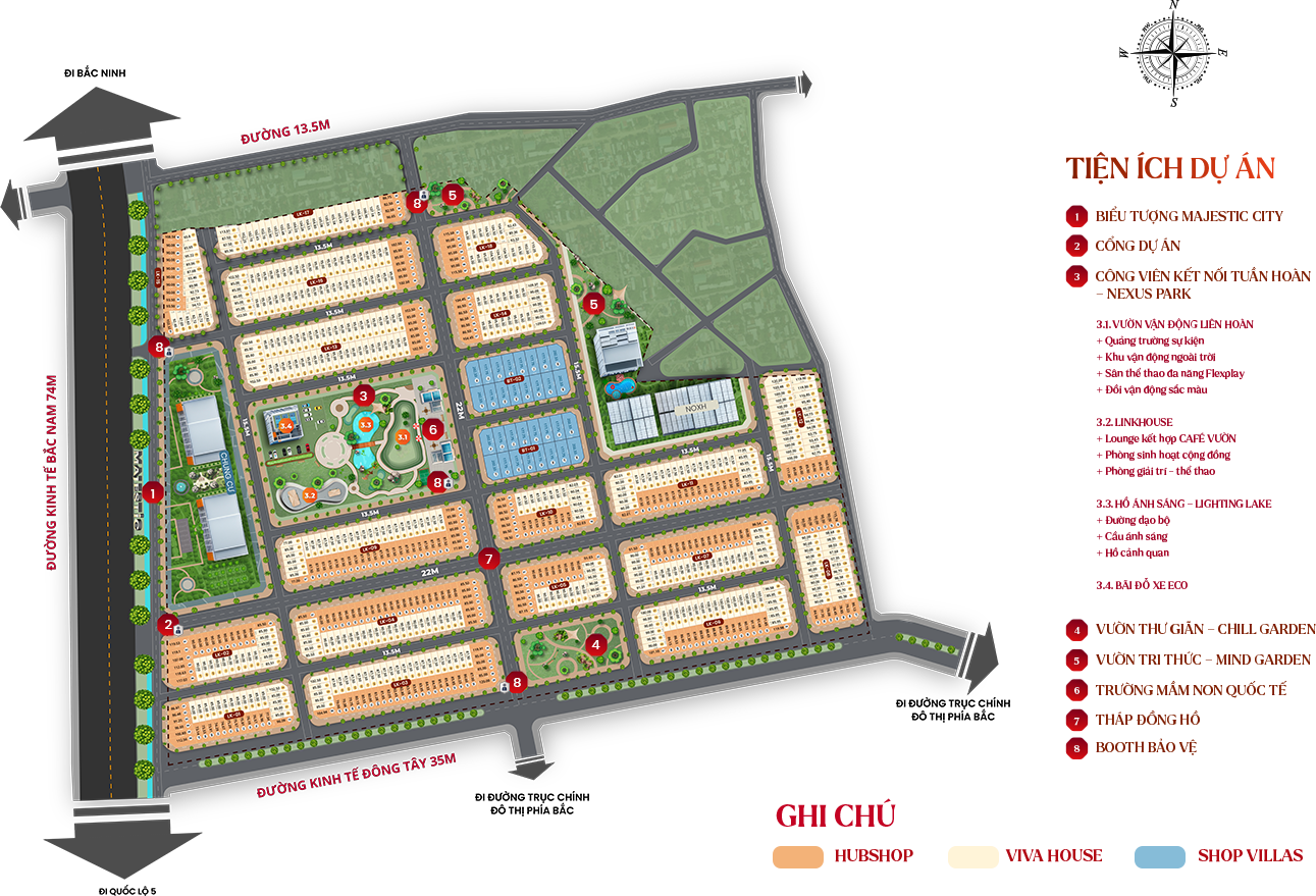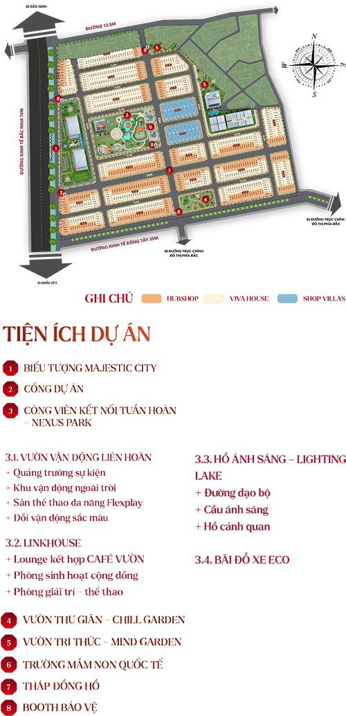 Tọa lạc tại vùng lõi trung tâm Thủ phủ công nghiệp số 1 miền Bắc, Majestic City là dự án duy nhất giao thoa giữa 2 trục đường huyết mạch liên tỉnh – Đại lộ kinh tế Bắc Nam & Đông Tây, kết nối thẳng tới Quốc lộ 5, đường vành đai 4 mang tới tiềm năng giao thương và cơ hội phát triển kinh tế, tài chính, công nghiệp mạnh mẽ.
