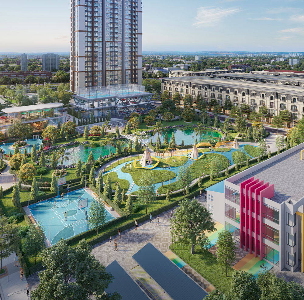 Khu đô thị thịnh vượng nối tiếp thịnh vượng nơi giá trị giao thương được tôn vinh, song hành cùng sự phát triển của khu vực tạo nên một sự phát triển đồng bộ, toàn diện đầu tiên tại nơi đây. Một khu đô thị ghi dấu ấn tiên phong về cuộc sống Tiện nghi – An toàn bền vững tạo thành vòng thịnh vượng tuần hoàn đúng nghĩa.